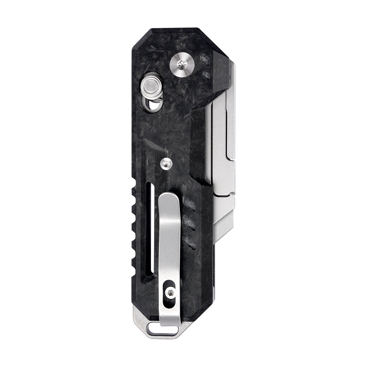 Specification Details Total Length (Open) 5.43 inches (13.8 cm) Blade Length 2.4 inches (6.1 cm) Blade Material Steel (Replaceable Utility Blade) Blade Width 0.748 inches (1.9 cm) Blade Thickness 0.0236 inches (0.06 cm) Handle Length 3.46 inches (8.8 cm) Handle Material Carbon Fiber + Steel Components Handle Width 1.14 inches (2.9 cm) Handle Thickness 0.433 inches (1.1 cm) Net Weight 2.01 oz (57 g) Core Features Replaceable Blade, Slider Button Lock, Pocket Clip, Lanyard Hole Use Scenarios Everyday Carry (EDC), Outdoor, Home DIY, Package Opening